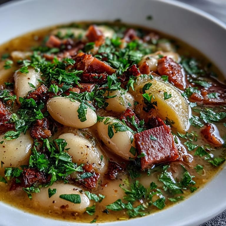 Save My neighbor Linda stopped by one November afternoon with a bag of smoked ham from her family butcher, insisting I needed to make something that would fill the house with warmth. That evening, I threw together what felt like a simple idea—beans, potatoes, a good broth, and that ham—and by the time the pot came to a simmer, the kitchen smelled like comfort itself. Something about the way the smoke from the ham mingled with thyme made me understand why she'd brought it over in the first place.