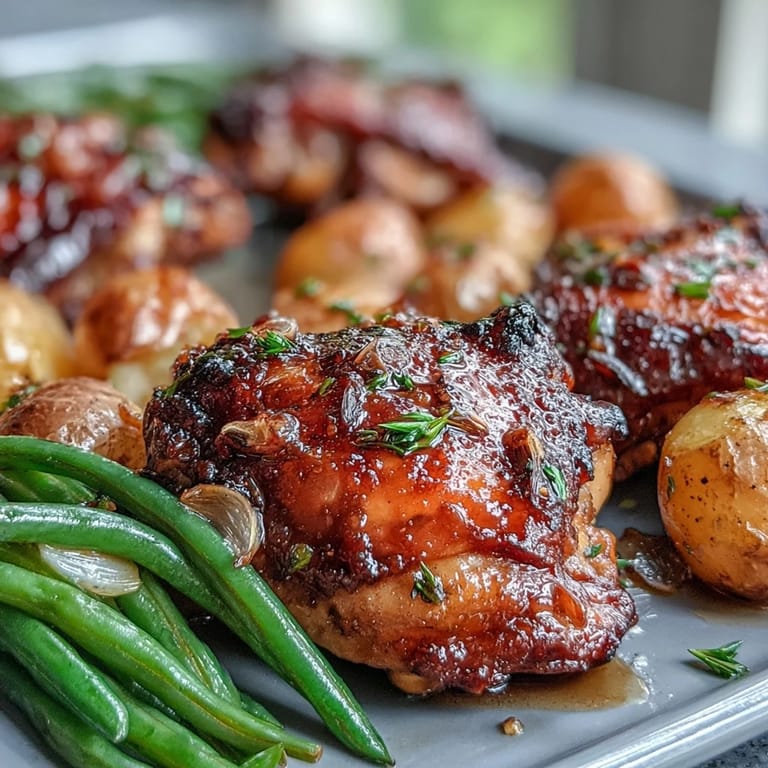 Save This Honey Garlic Sheet Pan Chicken with Green Beans and Baby Potatoes is a flavorful, all-in-one meal perfect for busy weeknights. Featuring juicy chicken thighs glazed in a sweet and savory honey garlic sauce, it is roasted alongside tender baby potatoes and crisp green beans for a wholesome and satisfying dinner.