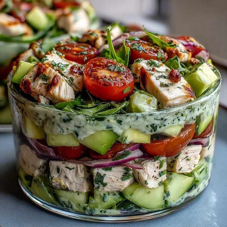 Save Last summer, I found myself in that familiar afternoon slump at work, staring at yet another sad desk lunch that had been sitting in my bag since dawn. A coworker pulled out a mason jar, gave it a good shake, and suddenly had this gorgeous, vibrant salad that actually looked appetizing. That moment sparked something, and I realized that layering a salad in a jar isn't just clever packaging, it's actually brilliant food engineering. When the dressing sits at the bottom and the hearty ingredients buffer the greens from getting soggy, everything stays fresh and crunchy. I started experimenting with my own versions, and this keto version with creamy avocado and tender chicken became my go-to formula.