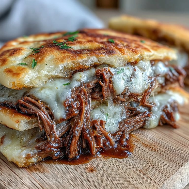 Save There's a moment right when the cheese starts melting into the warm naan, the beef still steaming underneath, when you realize this dish bridges so many things you love about cooking—the patience of slow cooking, the instant gratification of melted cheese, the dunkability of a proper sandwich. It becomes more than dinner; it becomes proof that sometimes the best ideas come from mixing traditions.