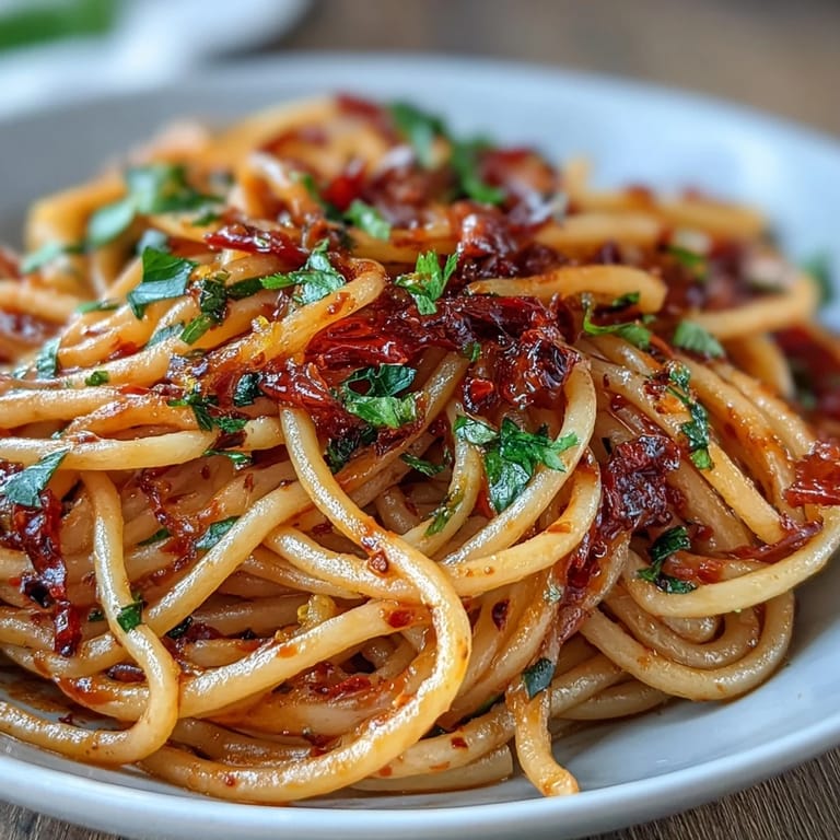 Save There's a particular evening I won't forget—standing in my tiny kitchen with a jar of Calabrian chili paste my Italian colleague had pressed into my hands weeks earlier, finally brave enough to open it. The aroma hit first, deep and complex, nothing like the aggressive heat of generic hot sauce. I'd been craving something authentic, something that tasted like the narrow streets of Calabria rather than a recipe card, and this simple pasta suddenly felt like the answer. Bucatini in a fiery chili oil, anchovy melting into the background, garlic whispering through it all—it became my weeknight obsession within days.